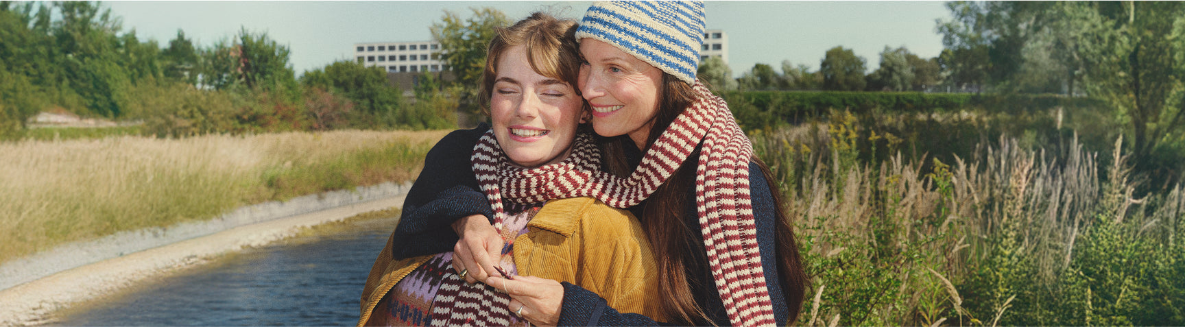 Dorthea s'inspire des motifs nordiques classiques. Thekla joue avec des rayures modernes et un style audacieux. Chaque modèle est téléchargeable gratuitement, facile à suivre et conçu pour bien mettre les fils en valeur.